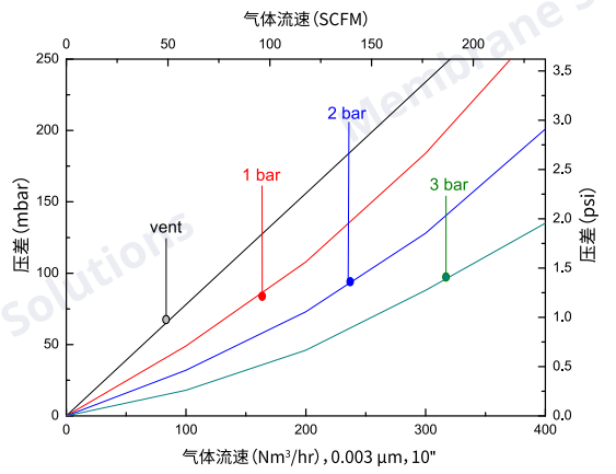 *測試氣體為壓縮空氣,測試壓力vent,1bar,2bar,3bar為出口壓力。