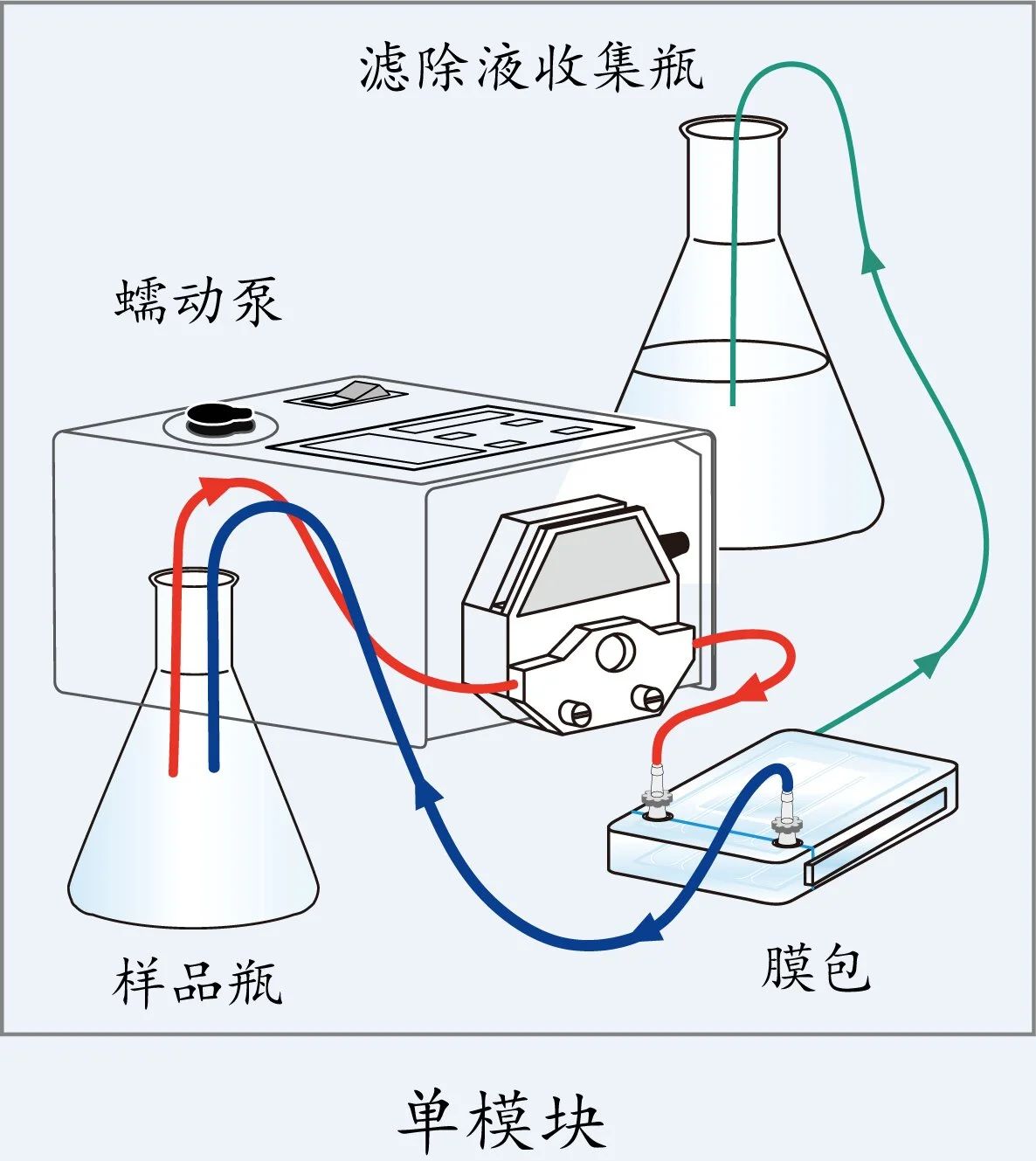 單個PRISM 50超濾膜包的有效面積為50cm²,可以處理100ml-3L的樣品,并且可以通過串聯多個膜包來增加處理速度或處理量。PRISM 50超濾膜包還具有獨特的翻轉流路設計,能夠充分利用膜表面積,提供最大的切向流速度,從而實現高通量、低吸附、高回收率的超濾效果。