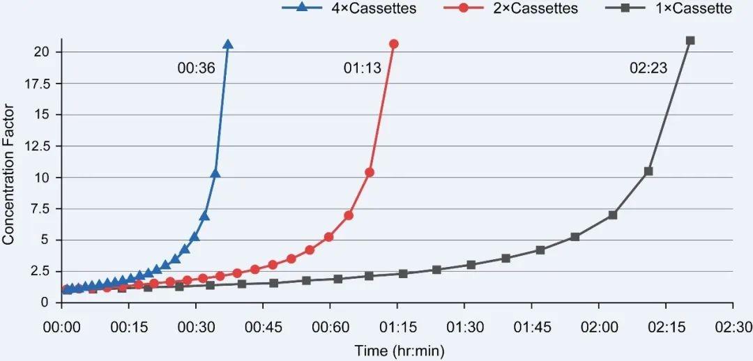 PRISM 50的模塊化設計使多個模塊串聯操作。這將最大吞吐量提高到3升,并與膜面積成比例地加快處理速度(見下圖)。